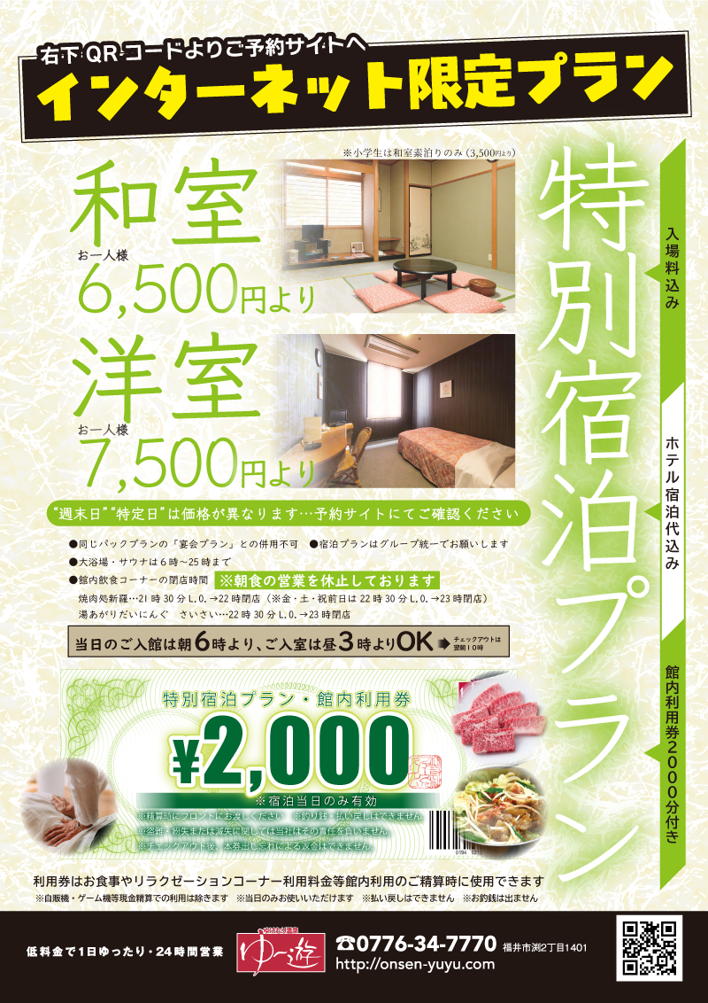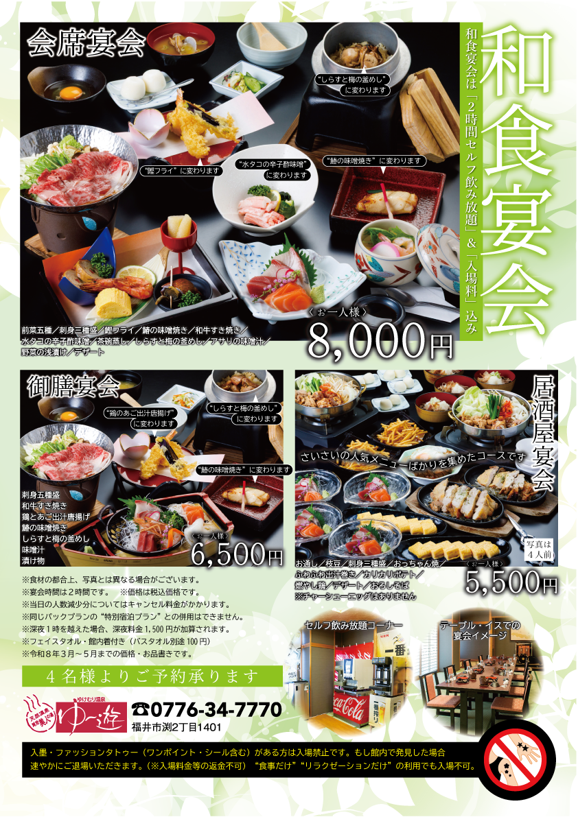 ※和食は「ゆ〜遊入場料込み」「2時間セルフ飲み放題付」