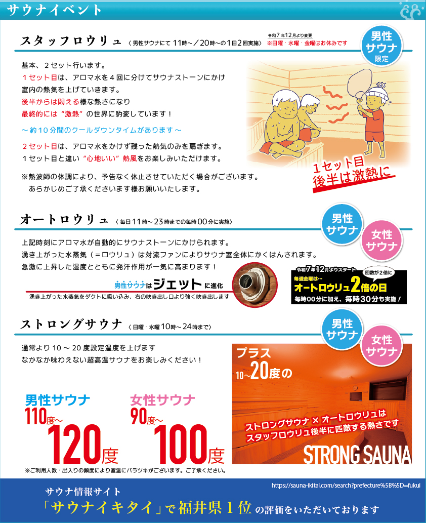 女性サウナでは、ロウリュもリフレッシュアロマもありません。